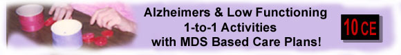 This Manual provides you with seven low-functioning activity ideas. In order to match your resident with the best activity, you need to assess his or her capability in three areas.